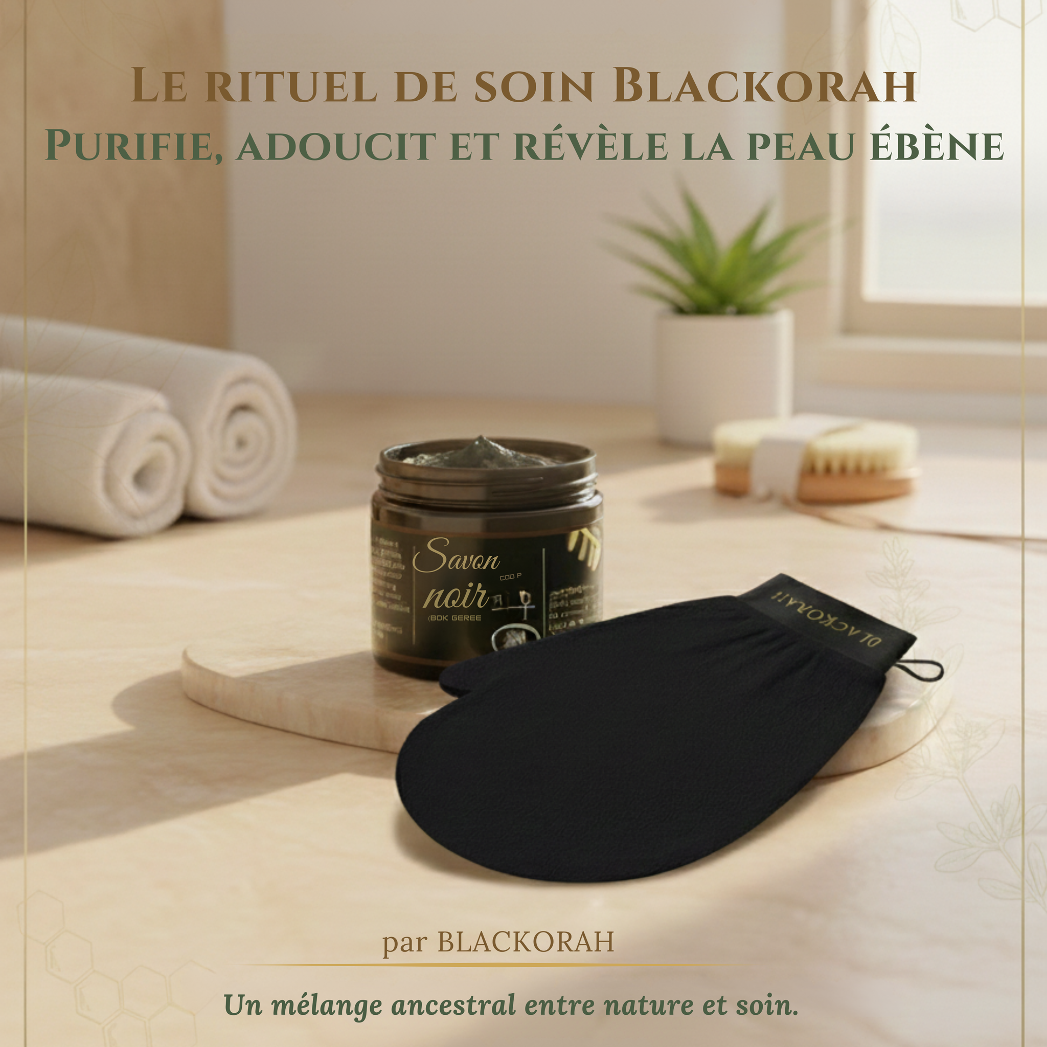 ✨ Conseil d’experte Blackorah peau ébène : Utilisez le gant exfoliant Blackorah 2 à 3 fois par semaine pour une peau plus lisse, plus douce et plus lumineuse.